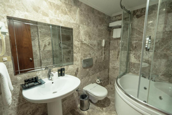 اقامت راحت:هتل گرین پارک تقسیم در استانبول، اتاقهای خانوادگی با تهویه مطبوع، حمام خصوصی و چشمانداز شهر ارائه میدهد. هر اتاق دارای میز کار، لوازم بهداشتی رایگان و مینیبار است.تجربه غذا:مهمانان میتوانند از غذاهای ترکی در رستوران مدرن هتل لذت ببرند که وعدههای ناهار و شام حلال سرو میکند. صبحانه بوفهای شامل شیرینیهای تازه، پنکیک، پنیر، میوه و آبمیوه ارائه میشود.امکانات رفاهی و تفریحی:این هتل دارای امکانات اسپا، اتاق تناسب اندام، و پذیرش ۲۴ ساعته است. از امکانات دیگر میتوان به آسانسور، فضای نشیمن در فضای باز، و اینترنت وایفای رایگان در سراسر مجموعه اشاره کرد.موقعیت مکانی عالی:این هتل در فاصله ۳۵ کیلومتری از فرودگاه استانبول قرار دارد و تنها چند قدم با خیابان استقلال و میدان تقسیم فاصله دارد. جاذبههای نزدیک شامل کاخ دلمهباغچه و برج گالاتا هستند.