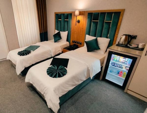 اتاقهای هتل پاویون مشهد با امکانات رفاهی اولیه، فضایی مناسب برای استراحت مهمانان فراهم میکنند. این اتاقها با چیدمانی کاربردی، نیازهای اولیه مسافران را پوشش میدهند. امکاناتی نظیر سیستم تهویه مطبوع، تلویزیون و سرویس بهداشتی از جمله تسهیلاتی است که در اتاقهای این هتل یافت میشود. هتل پاویون مشهد در کنار ارائه خدمات اقامتی، امکانات رفاهی دیگری را نیز در اختیار مهمانان خود قرار میدهد. رستوران هتل با ارائه انواع غذاها، نیازهای غذایی مهمانان را برطرف میسازد. همچنین کافیشاپ هتل مکانی مناسب برای استراحت و صرف نوشیدنیهای سرد و گرم است. خدمات لباسشویی نیز برای رفاه حال مسافران در نظر گرفته شده است.