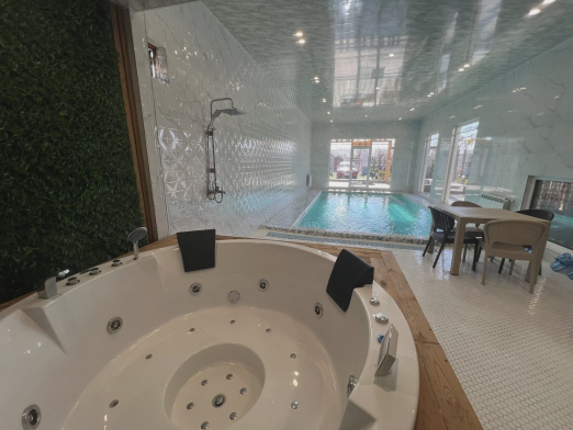 ویلا استخردار آبگرم نخلستان اقامتگاهی برای آرامش و تفریح شماست. این ویلا در زمینی به مساحت 500 متر مربع با زیر بنای 200 متر مربع در شهر سهیلیه واقع شده است. ویلا دوبلکس بوده و دارای 3 اتاق خواب، حمام و سرویس بهداشتی فرنگی است. حیاط ویلا برای پارک 3 خودرو مناسب است. قابل توجه مهمانان همراه با سالمند، کودک و افراد دارای معلولیت این ویلا دارای تعدادی پله است. پذیرش حیوان خانگی در این ویلا مجاز نیست. امکانات اقامتگاه: - استخر آبگرم با سیستم تصفیه اتوماتیک - سالن بازی دارای میز بیلیارد، فوتبال دستی - آشپزخانه با امکانات رفاهی شامل اجاق گاز، یخچال، فریزر و لوازم آشپزی - اتاق پذیرایی دارای مبلمان، تلویزیون، سیستم صوتی - سیستم سرمایشی کولر گازی و ابی و گرمایشی شوفاژ