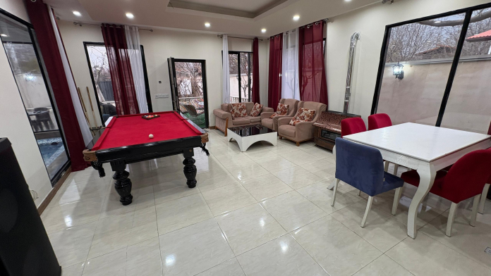 ویلا دو خوابه گلستان سهیلیه اقامتگاهی دنج و مجهز در روستای سنقرآباد است که با زیربنای 135 متر و امکانات کامل تفریحی و رفاهی، گزینهای مناسب برای سفرهای خانوادگی و دورهمیهای دوستانه به شمار میآید. فضای سبز اطراف ویلا و آرامش منطقه، شرایطی ایدهآل برای استراحت و فاصله گرفتن از شلوغی شهر فراهم میکند. ویلا دارای دو اتاق خواب است که یکی از اتاقها مستر میباشد. در اتاق مستر امکاناتی مانند آینه و میز آرایشی در نظر گرفته شده و اتاق دیگر نیز با تجهیزات پایه برای اقامتی راحت آماده شده است. سیستم سرمایشی و گرمایشی شامل کولر آبی و بخاری در ویلا فراهم است. سرویسهای بهداشتی ایرانی و فرنگی بهصورت اختصاصی در اختیار مهمانان قرار دارد و پک بهداشتی هتلی نیز برای رفاه بیشتر ارائه میشود. از امکانات شاخص این ویلا میتوان به استخر سرپوشیده آب گرم، میز بیلیارد، فوتبالدستی، باربیکیو و فضای سبز اشاره کرد. بخش نشیمن با مبلمان و تلویزیون تجهیز شده و آشپزخانه نیز دارای اجاق گاز، وسایل پختوپز و یخچال است تا مهمانان بتوانند بهراحتی از امکانات پخت غذا استفاده کنند. پارکینگ روباز نیز برای خودروها در نظر گرفته شده است. موقعیت مکانی ویلا دسترسی مناسبی به امکانات روزمره دارد. فاصله آن تا خیابان اصلی سنقرآباد حدود 300 متر است و سوپرمارکت، نانوایی و سایر خدمات شهری در کمتر از 5 دقیقه قابل دسترسی هستند. امکان ورود حیوانات خانگی در این اقامتگاه وجود دارد، با این شرط که حیوانات تنها در محوطه بیرونی نگهداری شوند و به استخر و فضای داخلی ویلا وارد نشوند. همچنین در صورت تمایل به دعوت مهمان بیش از ظرفیت استاندارد، این موضوع با هماهنگی قبلی با میزبان امکانپذیر است. اگر بهدنبال ویلایی مجهز با امکانات تفریحی کامل، دسترسی مناسب و فضایی آرام در سهیلیه هستید، ویلا دو خوابه گلستان سهیلیه میتواند انتخابی مناسب برای اقامت شما باشد.